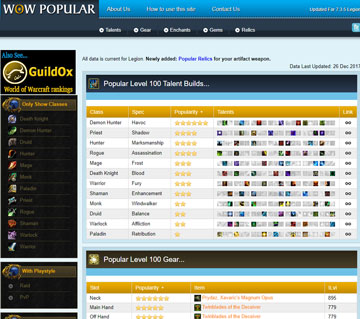 Warcraft-based site ranking specs, gear and talents. The site is no longer live, but can be viewed through the Wayback Machine